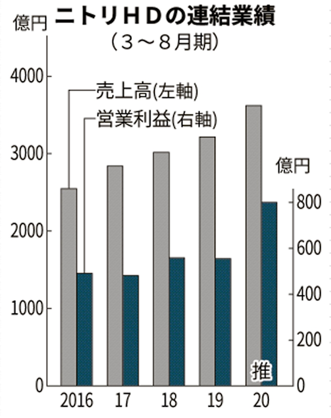 ニトリhdの営業益4割増 3 8月期 在宅需要追い風 日本経済新聞