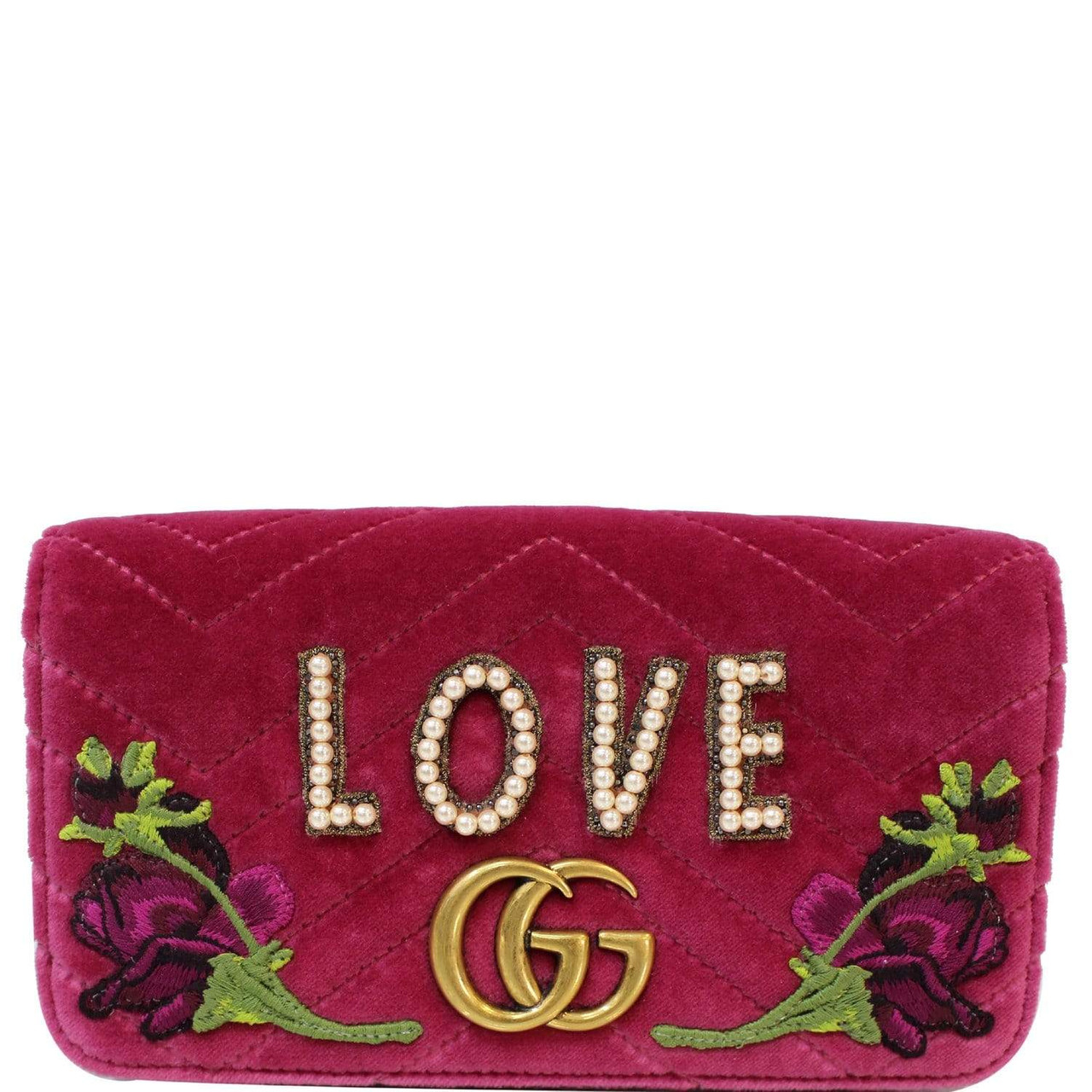 Gucci Marmont Velvet Love Mini Pearl Embroidered Shoulder Bag Pink Leprix