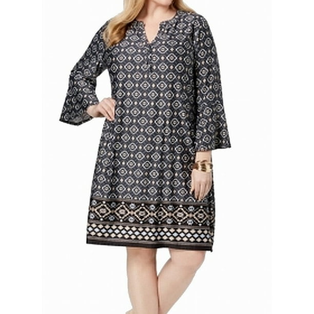 Ny Collection Women S Plus Size 3 4 Sleeve Deep V Neck Shift Dress Special Product Just For You See It Now Women S Dr Shift Dress Ny Collection Dresses