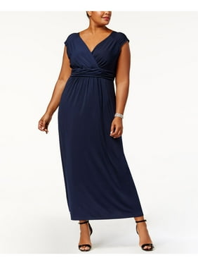 Amazon Com Ny Collection Womens Plus Faux Wrap A Line Maxi Dress Navy 1x Clothing
