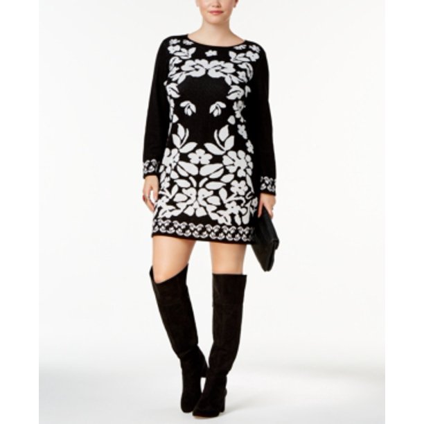 Ny Collection Notations Inc Ny Collection Petite Plus Size Jacquard Sweater Dress 2xp Walmart Com Walmart Com