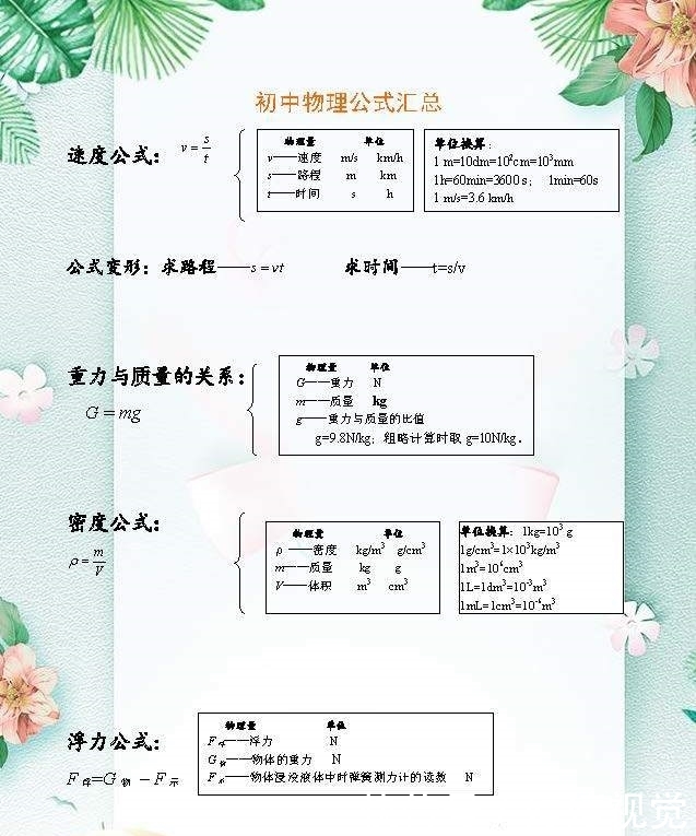 知识点 初中物理18类重要公式总结 学霸必备 热备资讯