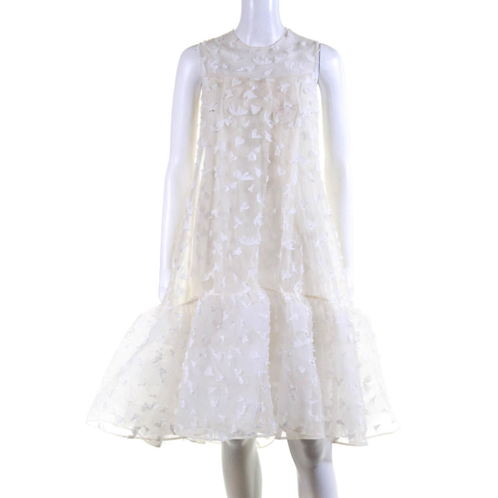 Huishan Zhang Womens Mesh Tulle Faux Feather Dress White Size 6