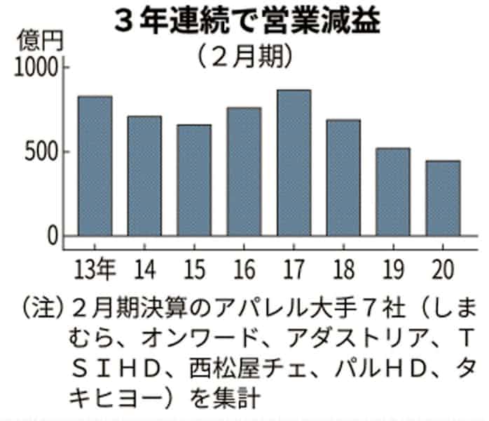 アパレル大手7社の年2月期 5社が減益 赤字転落 日本経済新聞
