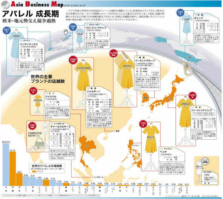 アパレル 成長期 アジア ビジネス マップ 日本経済新聞
